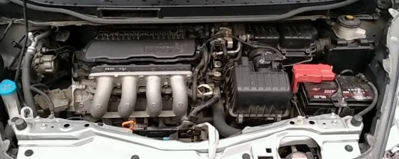飞度的引擎盖需要先在车内拉动解锁开关,再从车头处向右扳动扳手开锁才能打开。打开引擎盖后,要用撑杆顶住引擎盖。在引擎盖下面是飞度的地球梦1.5L自然吸气发动机。除发动机外,还有变速箱以及各种系统的部件。