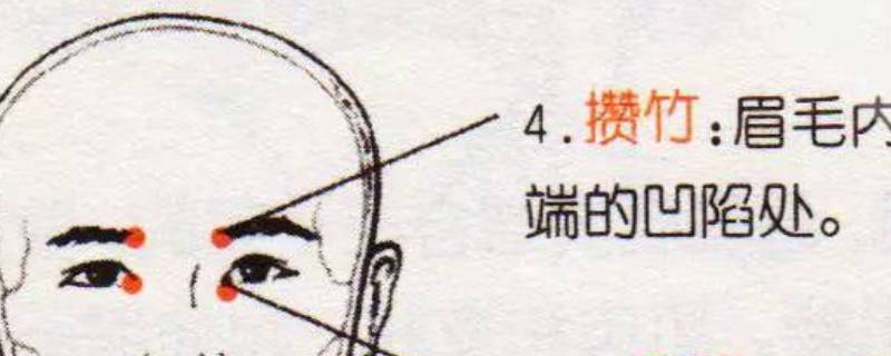 攒竹穴位于面部,当眉头陷中,眶上切迹处。取穴时应要求患者采用正坐或仰卧的姿势,攒竹穴位于人体的面部,眉毛内侧边缘凹陷处(当眉头陷中,眶上切迹处)即是。按摩的方法是:用双手大拇指直接按压双侧的眉头,使劲一点,按压下去几秒钟,再松开。然后再按压,再松开。