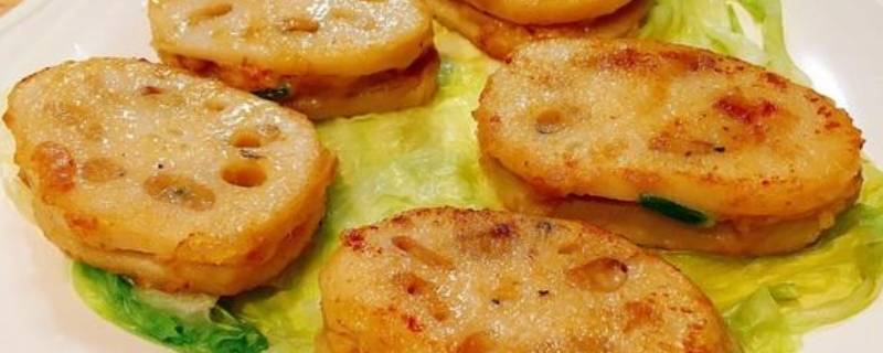 拿两片莲藕,肉末夹中间。