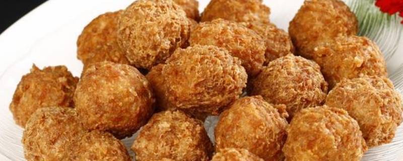 1、肉切小块,打成肉馅。葱切末,姜切末。放入葱末、姜末、1勺生抽、1勺料酒、半勺盐、半勺鸡精、2g胡椒粉、1个鸡蛋顺时针搅拌,1勺食用油拌匀,团成肉丸。油温6成热,放入丸子炸至金黄即可。