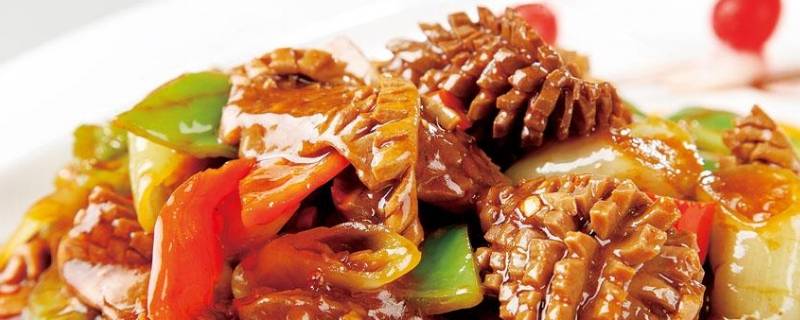 7、腰花倒进锅里翻炒几下。