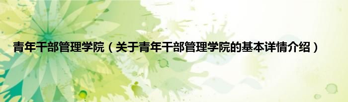 青年干部管理学院(关于青年干部管理学院的基本详情介绍)