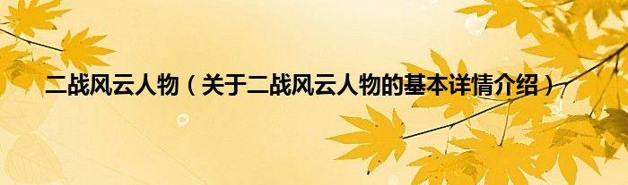 二战风云人物(关于二战风云人物的基本详情介绍)