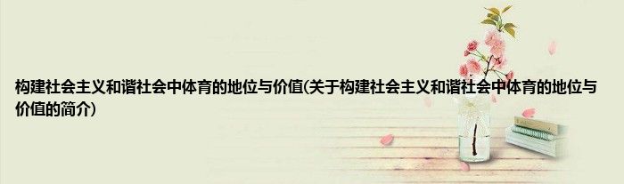 大家好,构建社会主义和谐社会中体育的地位与价值,关于构建社会主义和谐社会中体育的地位与价值的简介很多人还不知道,现在让我们一起来看看吧!