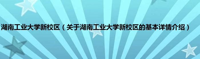 湖南工业大学新校区(关于湖南工业大学新校区的基本详情介绍)