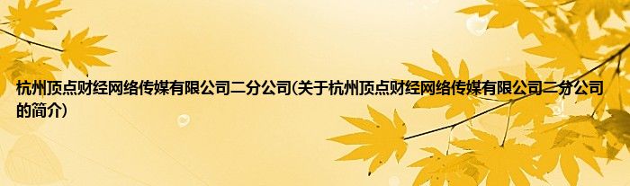 本文关于杭州顶点财经网络传媒有限公司二分公司的简介就讲解完毕,希望对大家有所帮助。