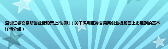 本文关于深圳证券交易所创业板股票上市规则的基本详情介绍就讲解完毕,希望对大家有所帮助。