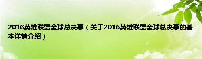 本文关于2016英雄联盟全球总决赛的基本详情介绍就讲解完毕,希望对大家有所帮助。