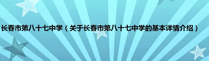 本文关于长春市第八十七中学的基本详情介绍就讲解完毕,希望对大家有所帮助。