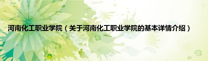本文关于河南化工职业学院的基本详情介绍就讲解完毕,希望对大家有所帮助。