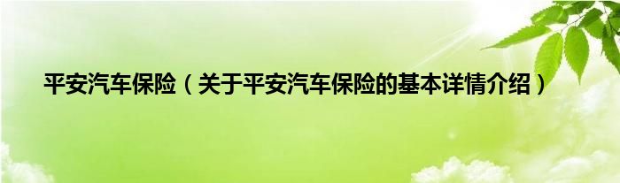 本文关于平安汽车保险的基本详情介绍就讲解完毕,希望对大家有所帮助。