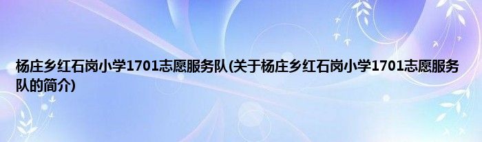 大家好,杨庄乡红石岗小学1701志愿服务队,关于杨庄乡红石岗小学1701志愿服务队的简介很多人还不知道,现在让我们一起来看看吧!