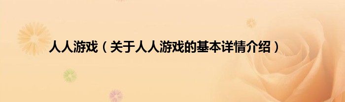 本文关于人人游戏的基本详情介绍就讲解完毕,希望对大家有所帮助。