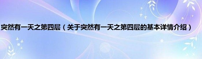 本文关于突然有一天之第四层的基本详情介绍就讲解完毕,希望对大家有所帮助。