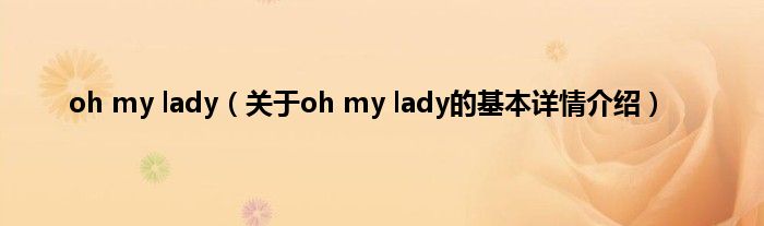 本文关于oh my lady的基本详情介绍就讲解完毕,希望对大家有所帮助。