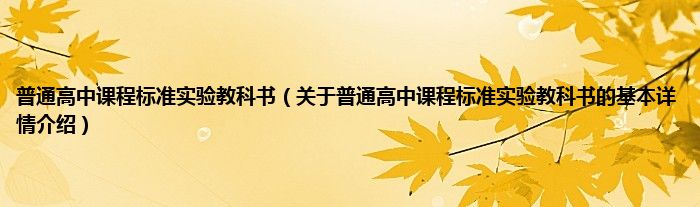 本文关于普通高中课程标准实验教科书的基本详情介绍就讲解完毕,希望对大家有所帮助。