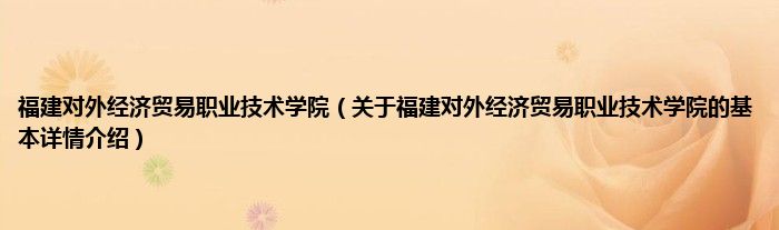 本文关于福建对外经济贸易职业技术学院的基本详情介绍就讲解完毕,希望对大家有所帮助。