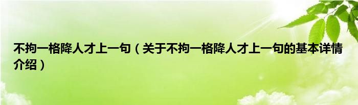 本文关于不拘一格降人才上一句的基本详情介绍就讲解完毕,希望对大家有所帮助。