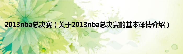 本文关于2013nba总决赛的基本详情介绍就讲解完毕,希望对大家有所帮助。