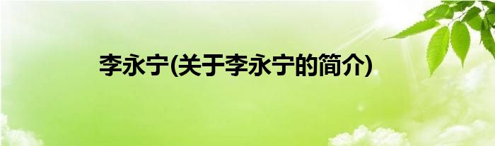 本文关于李永宁的简介就讲解完毕,希望对大家有所帮助。