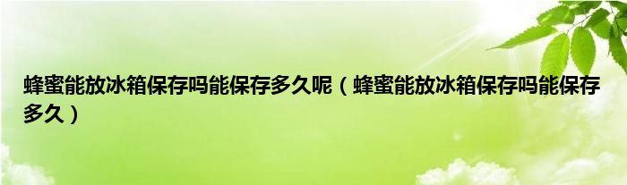 一、 蜂蜜能放冰箱保存吗能保存多久