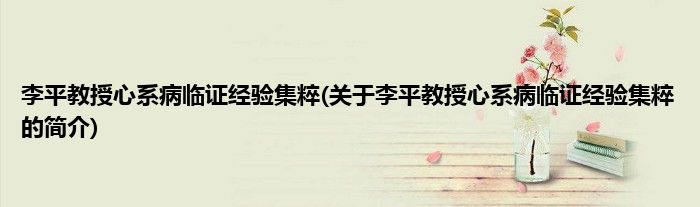 本文关于李平教授心系病临证经验集粹的简介就讲解完毕,希望对大家有所帮助。