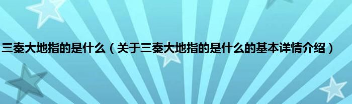 三秦大地指的是什么(关于三秦大地指的是什么的基本详情介绍)