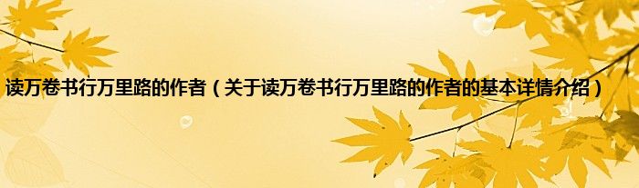 本文关于读万卷书行万里路的作者的基本详情介绍就讲解完毕,希望对大家有所帮助。