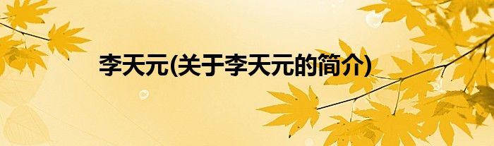 大家好,李天元,关于李天元的简介很多人还不知道,现在让我们一起来看看吧!