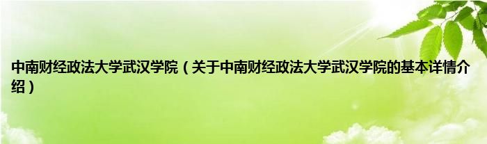 本文关于中南财经政法大学武汉学院的基本详情介绍就讲解完毕,希望对大家有所帮助。