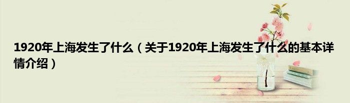 本文关于1920年上海发生了什么的基本详情介绍就讲解完毕,希望对大家有所帮助。