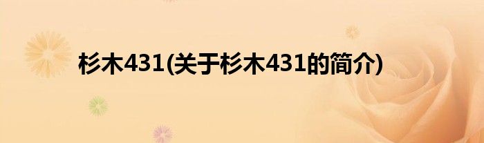 大家好,杉木431,关于杉木431的简介很多人还不知道,现在让我们一起来看看吧!