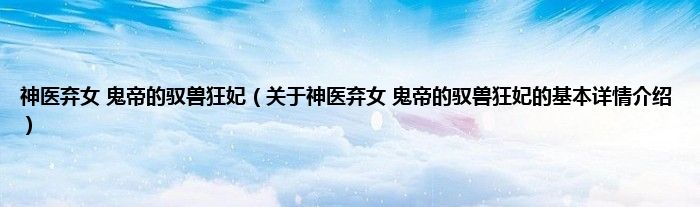 本文关于神医弃女 鬼帝的驭兽狂妃的基本详情介绍就讲解完毕,希望对大家有所帮助。