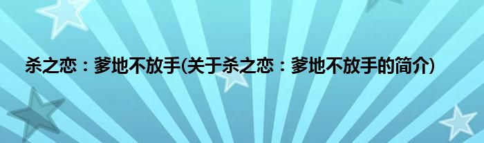 本文关于杀之恋:爹地不放手的简介就讲解完毕,希望对大家有所帮助。