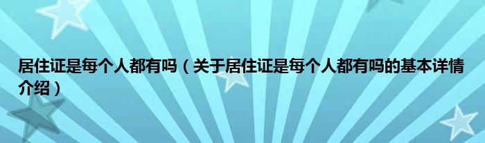 本文关于居住证是每个人都有吗的基本详情介绍就讲解完毕,希望对大家有所帮助。