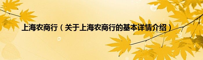 本文关于上海农商行的基本详情介绍就讲解完毕,希望对大家有所帮助。