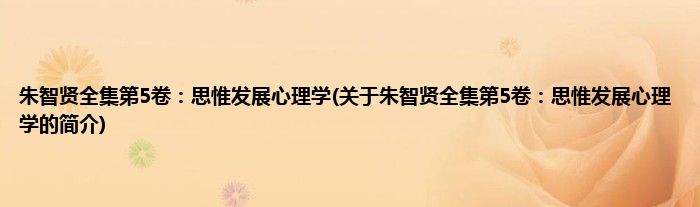 大家好,朱智贤全集第5卷:思惟发展心理学,关于朱智贤全集第5卷:思惟发展心理学的简介很多人还不知道,现在让我们一起来看看吧!