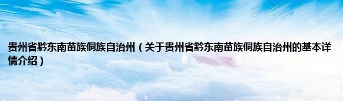 本文关于贵州省黔东南苗族侗族自治州的基本详情介绍就讲解完毕,希望对大家有所帮助。