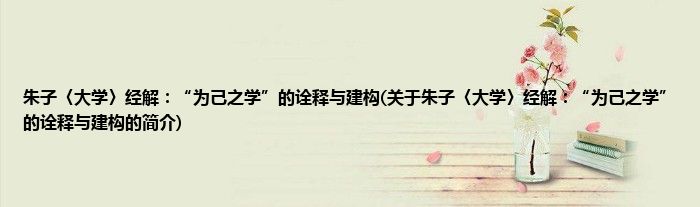 本文关于朱子〈大学〉经解:“为己之学”的诠释与建构的简介就讲解完毕,希望对大家有所帮助。