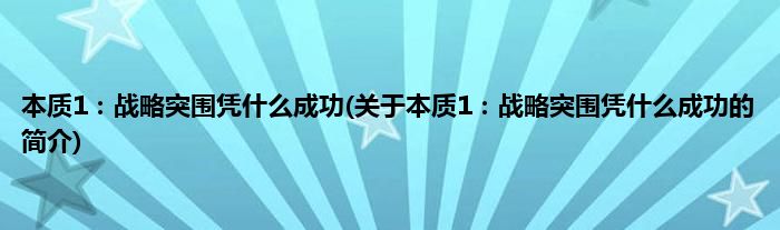 本文关于本质1:战略突围凭什么成功的简介就讲解完毕,希望对大家有所帮助。