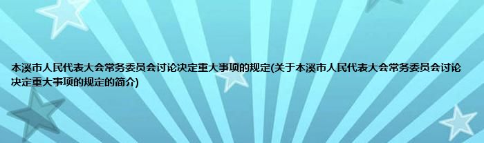 大家好,本溪市人民代表大会常务委员会讨论决定重大事项的规定,关于本溪市人民代表大会常务委员会讨论决定重大事项的规定的简介很多人还不知道,现在让我们一起来看看吧!