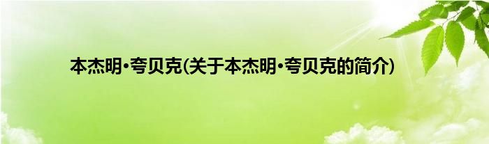 本文关于本杰明·夸贝克的简介就讲解完毕,希望对大家有所帮助。