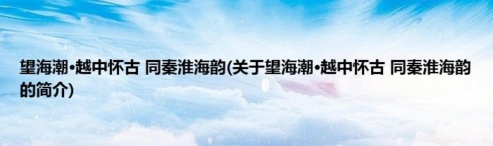 望海潮·越中怀古 同秦淮海韵(关于望海潮·越中怀古 同秦淮海韵的简介)