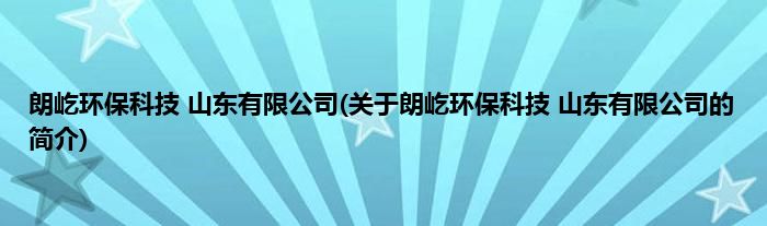 本文关于朗屹环保科技 山东有限公司的简介就讲解完毕,希望对大家有所帮助。