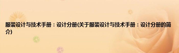 1、 《服装设计与技术手册:设计分册》力图从系统的、准确的服装专业概念人手,为读者确立正确的设计基础和操作规程。