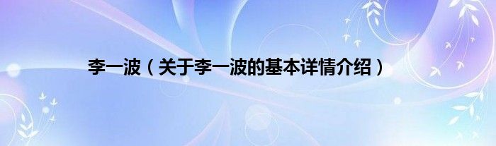 本文关于李一波的基本详情介绍就讲解完毕,希望对大家有所帮助。