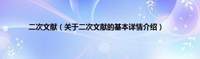 本文关于二次文献的基本详情介绍就讲解完毕,希望对大家有所帮助。