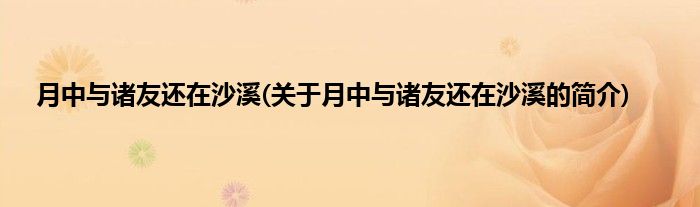 大家好,月中与诸友还在沙溪,关于月中与诸友还在沙溪的简介很多人还不知道,现在让我们一起来看看吧!
