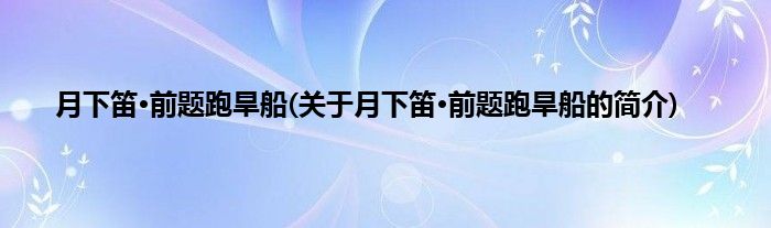 大家好,月下笛·前题跑旱船,关于月下笛·前题跑旱船的简介很多人还不知道,现在让我们一起来看看吧!
