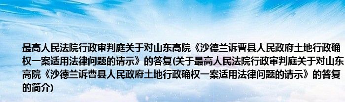 本文关于最高人民法院行政审判庭关于对山东高院《沙德兰诉曹县人民政府土地行政确权一案适用法律问题的请示》的答复的简介就讲解完毕,希望对大家有所帮助。